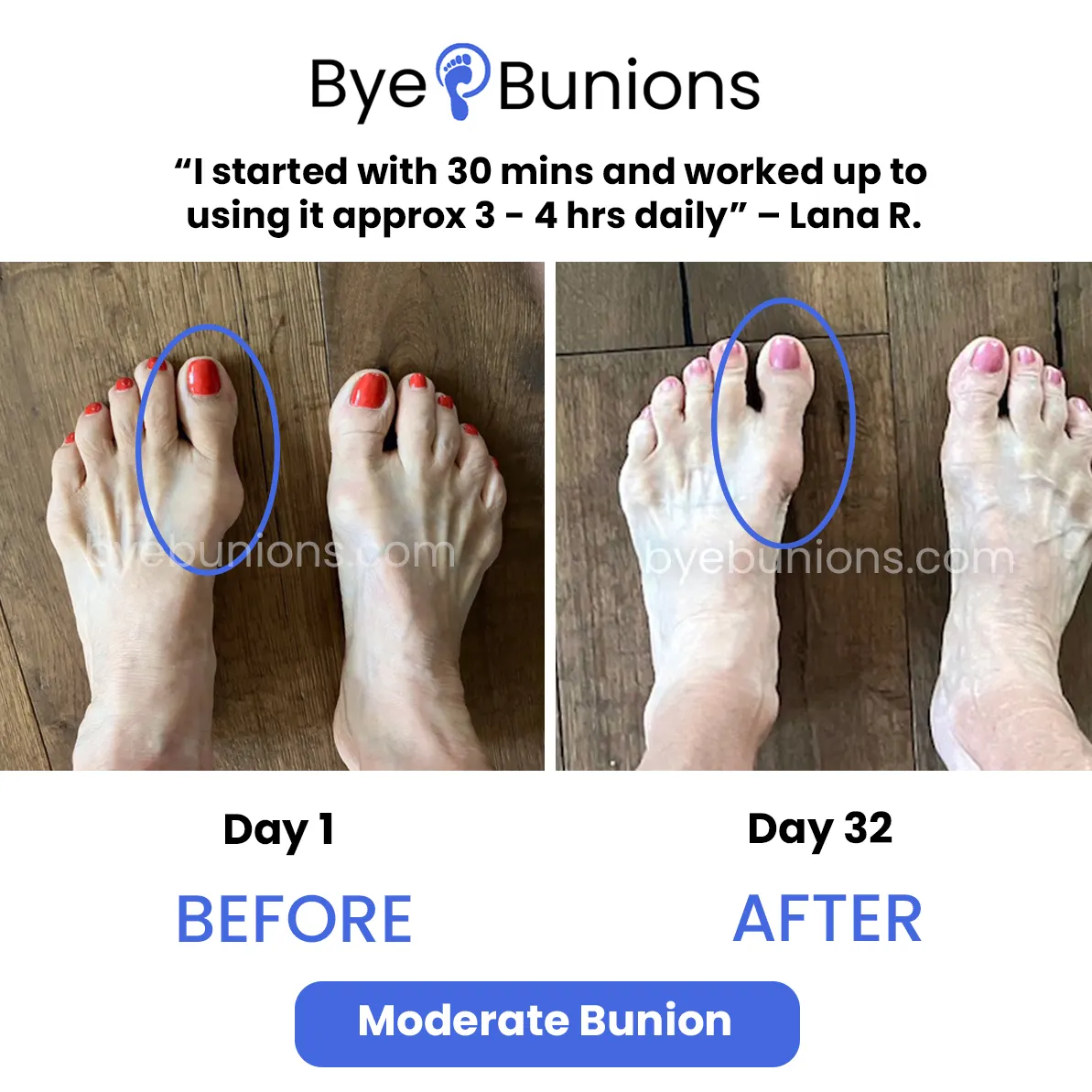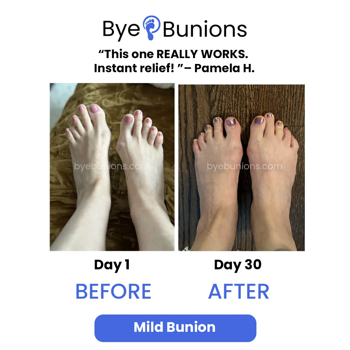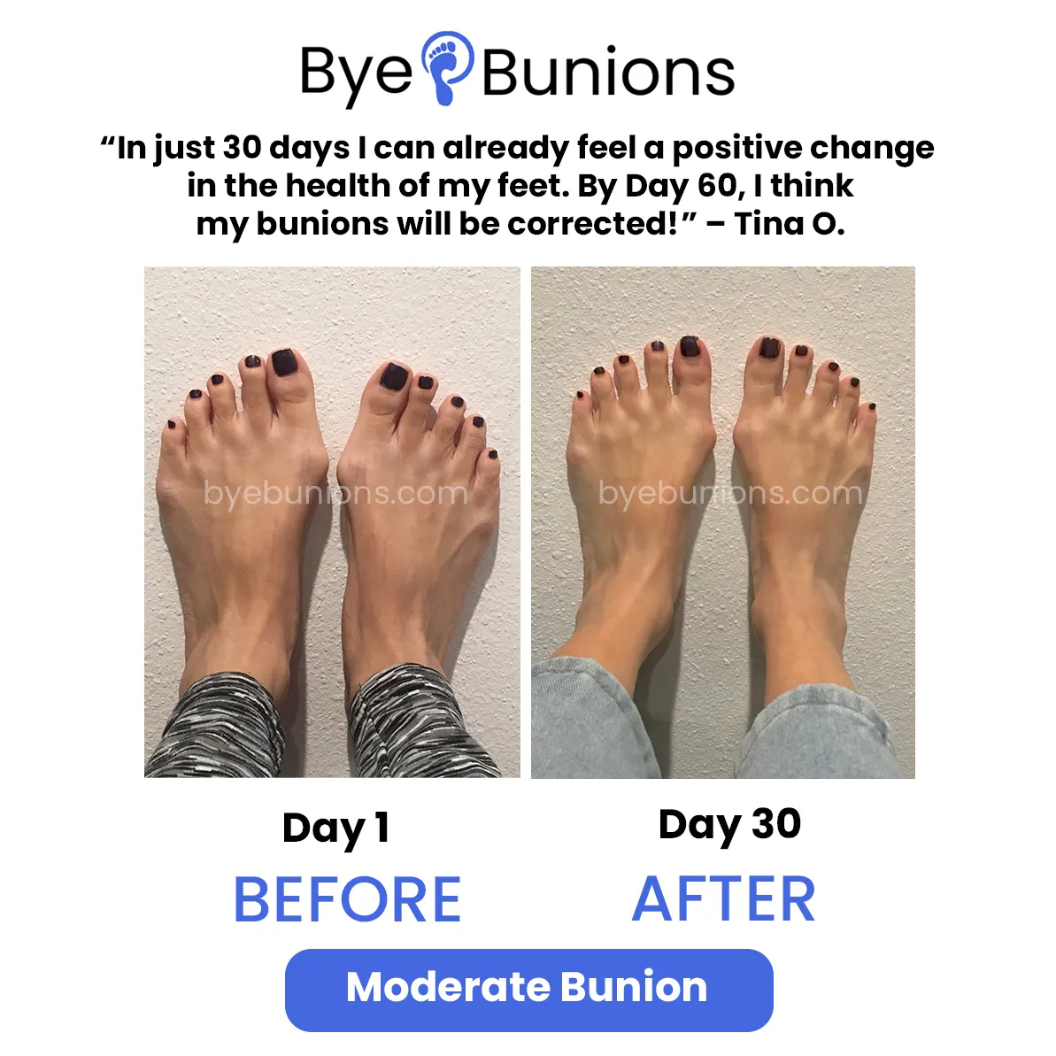If you’re not absolutely thrilled with the results, Bye Bunions doesn’t want your money. No hassles, no questions asked.